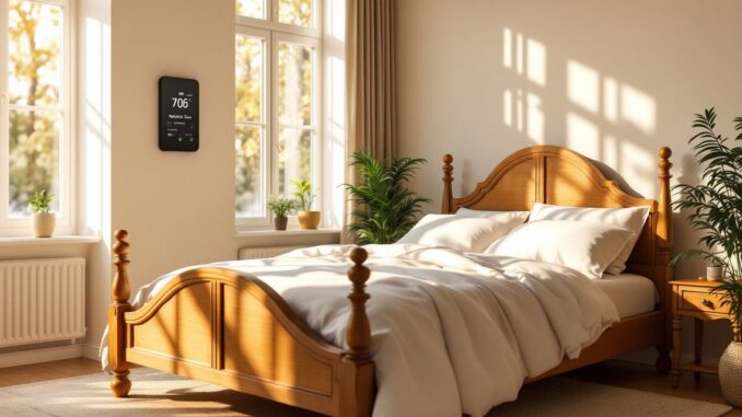 Le chauffage adapté contribue à réguler l’humidité. Une température stable entre 16°C et 18°C dans la chambre limite la condensation. Les variations brutales de température favorisent la formation de buée sur les surfaces froides. Évitez de couper complètement le chauffage la nuit, car le refroidissement des murs amplifie les problèmes d’humidité. Les radiateurs électriques assèchent davantage l’air que les systèmes à eau chaude.
